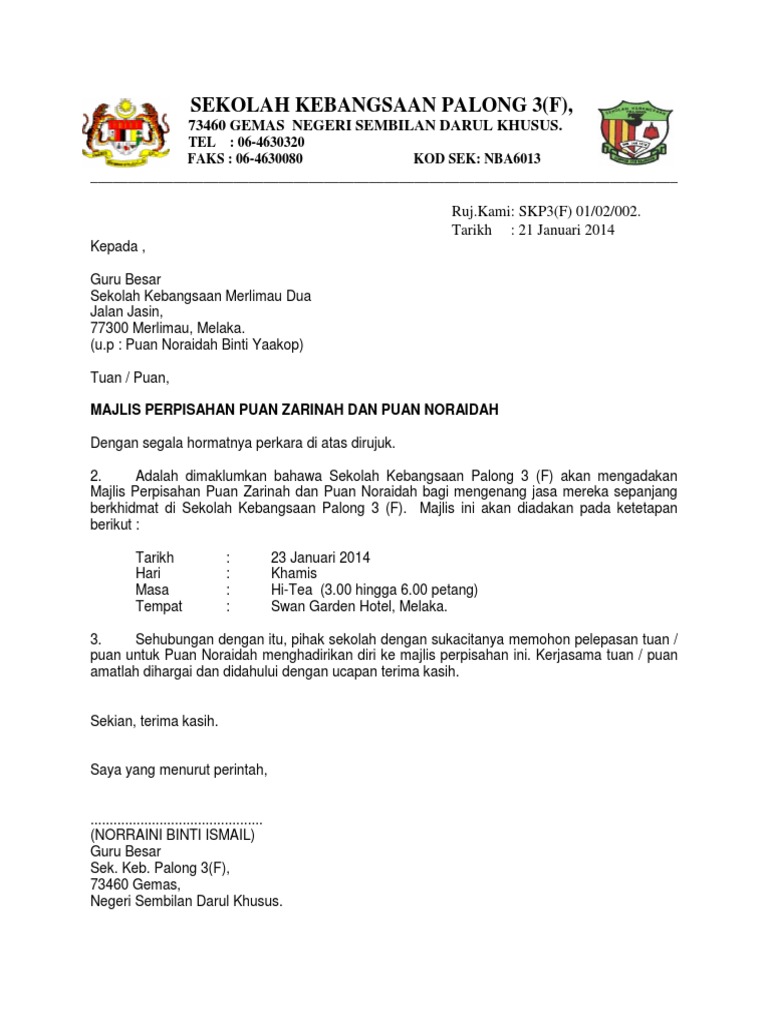 Surat Jemputan Majlis Perpisahan Pdf