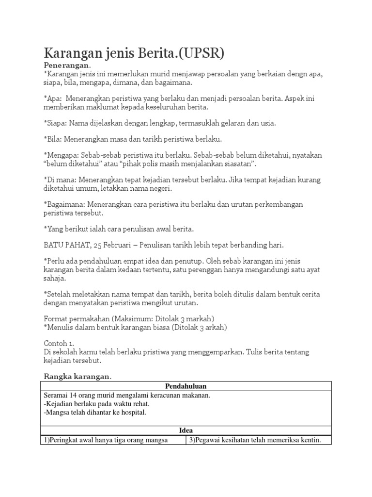 Karangan Jenis Berita Upsr Gordoncxt