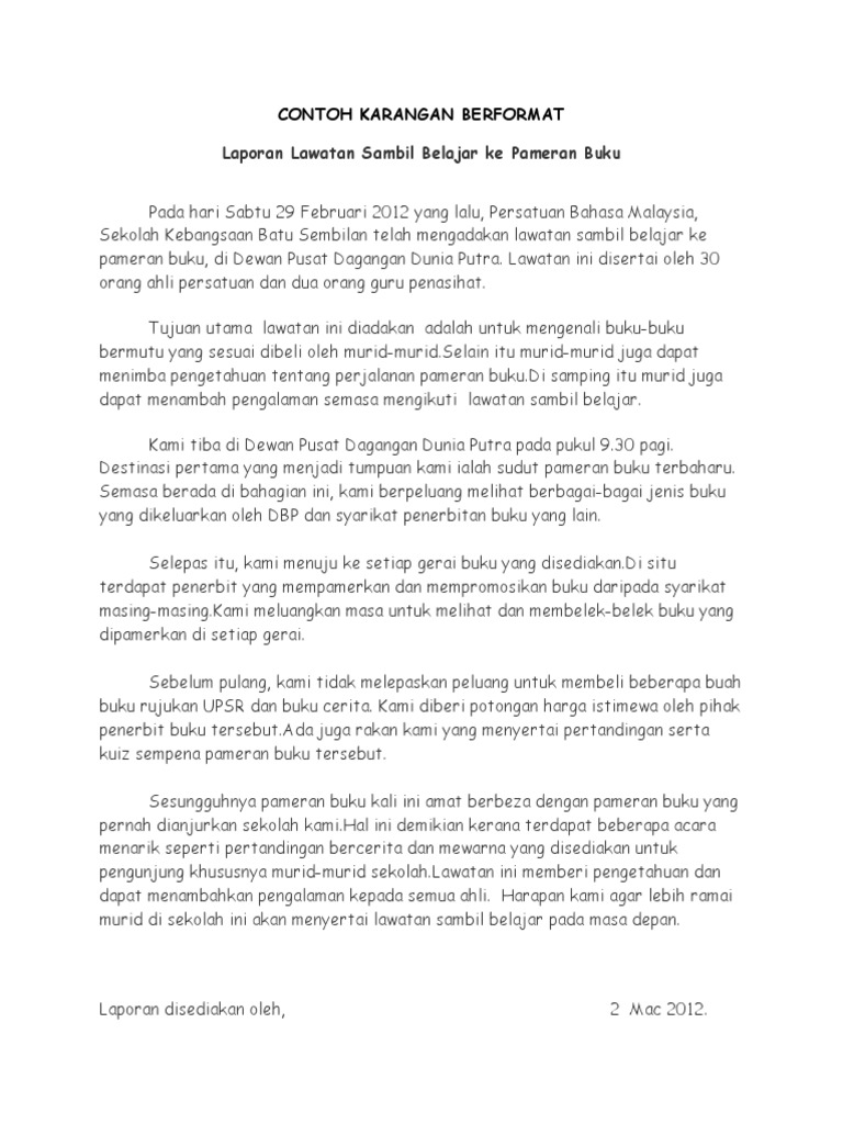 Karangan Laporan Lawatan Sambil Belajar Dan Berita Pdf